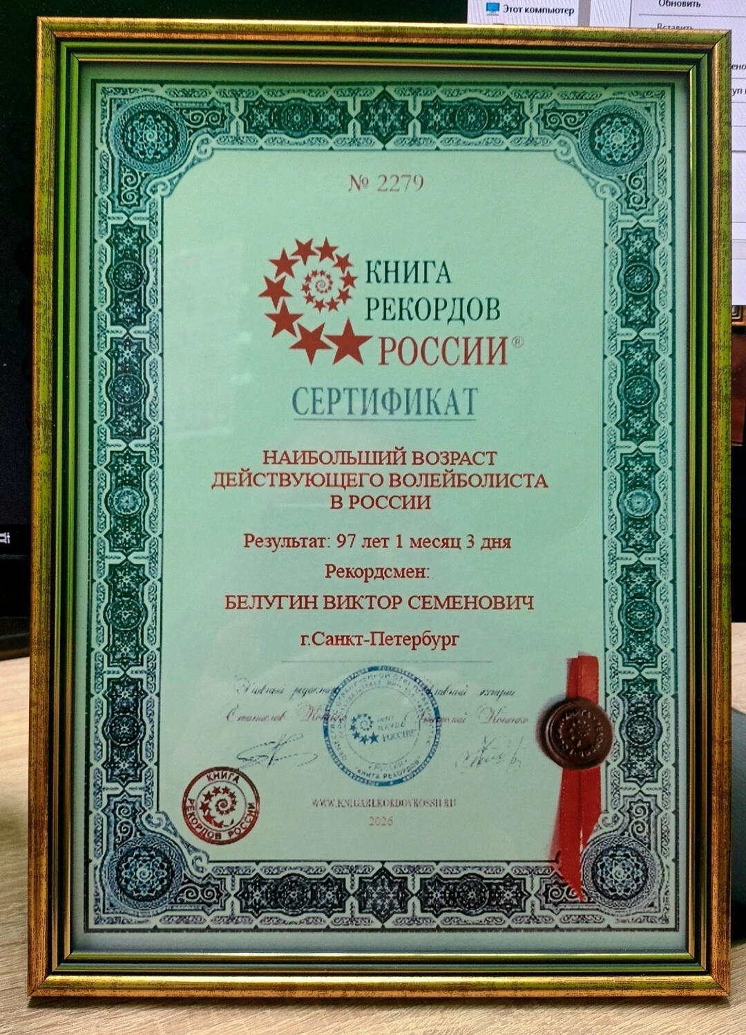Сейчас Виктору Семеновичу 97 лет, и он продолжает участвовать в соревнованиях. Недавно он вернулся из Орла, где принял участие в Кубке России. Во время торжественного открытия турнира ему вручили сертификат Книги рекордов России и памятную футболку.
