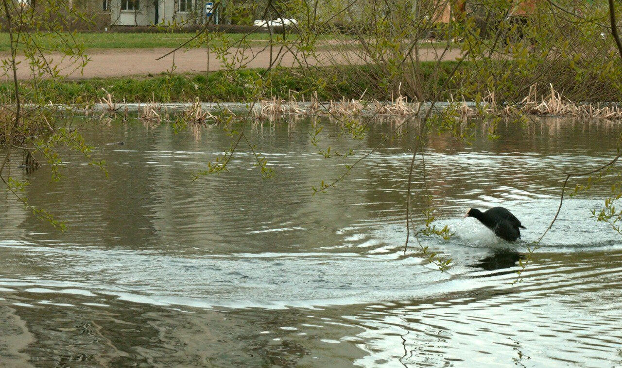На днях Павел Глазков наблюдал необычный способ прогнать несчастных поганок. Стоило проворным птицам уйти от острого клюва под воду, как обладательница лысины буквально лапами встала на воду и принялась яростно хлопать по воде. Так агрессивная лысуха пыталась еще больше застращать парочку.