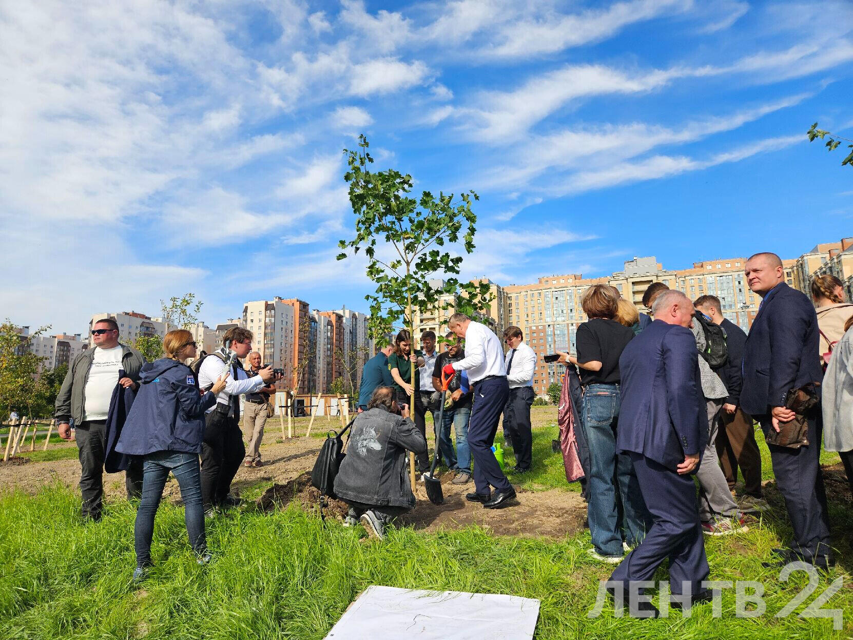 В пятницу, 12 сентября, губернатор Ленобласти Александр Дрозденко и зампред правительства по строительству и ЖКХ Евгений Барановский приняли участие в посадке кленов рядом с памятником героям СВО в Кудрово (Всеволожский район). Всего посажено 10 деревьев.