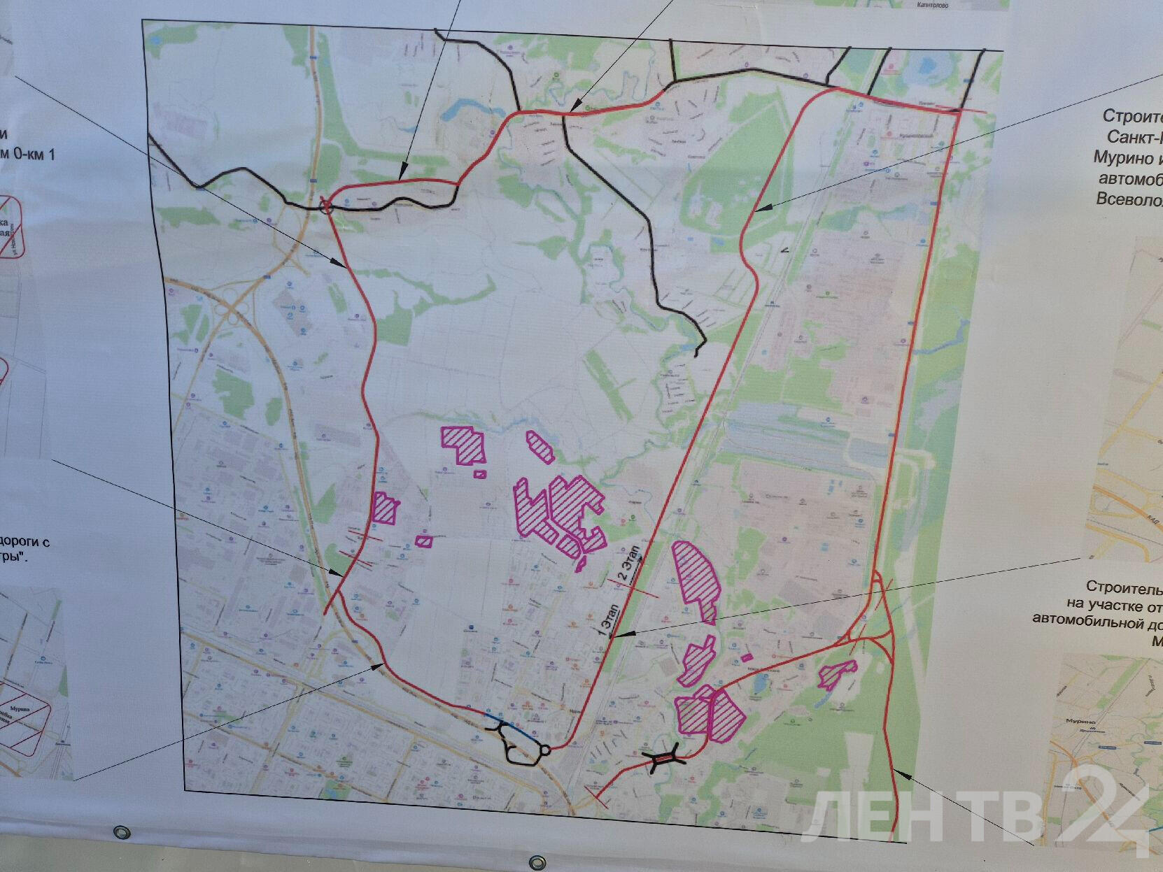 Договорились, что вот здесь, в направлении Лавриков, у нас появится четырехполосная современная дорога с пешеходными переходами, со светофорами. Но сейчас, видя то, что мы здесь строим, мы решили пойти дальше. Уже в бюджете заложено финансирование, дорога будет продолжаться. Мы будем через Лаврики выходить на Кузьмолово, и практически всю эту сторону мы по трафику разгрузим.