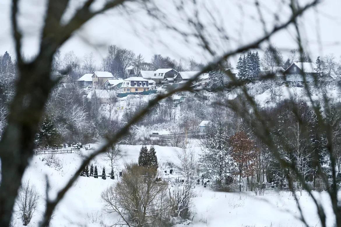 зимней природы. На них запечатлены заснеженные деревья и дома