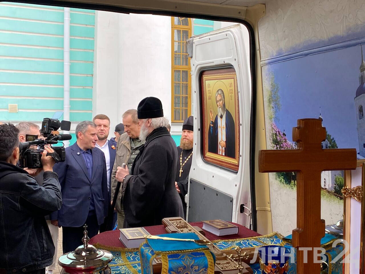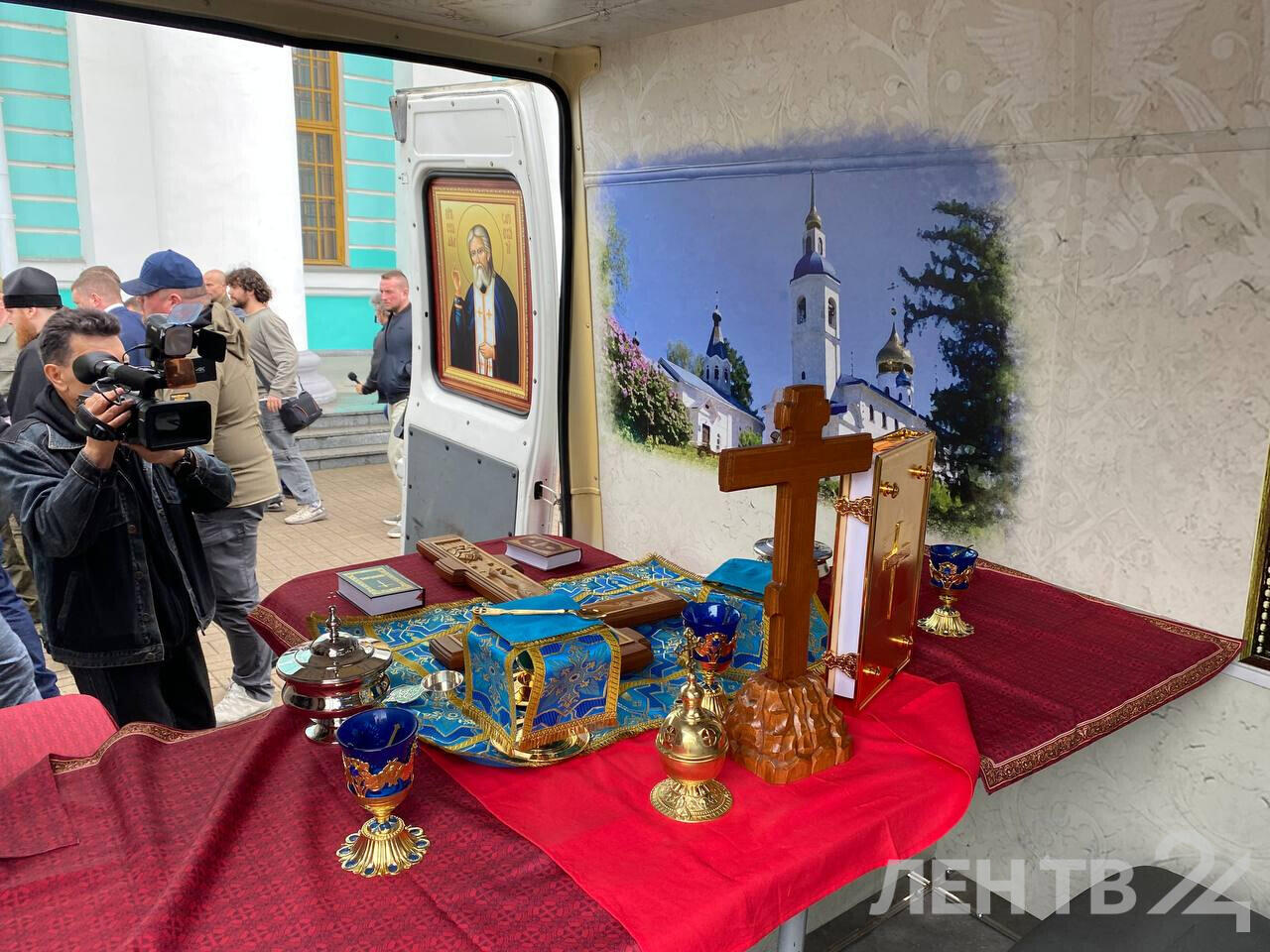 Кроме того, сегодня власти Ленинградской области передали Курской митрополии мобильную часовню. В специально оборудованном микроавтобусе есть все для проведения церковной службы. Машина даже защищена системой радиоэлектронной борьбы, так что сможет отправиться и в зону военных действий.