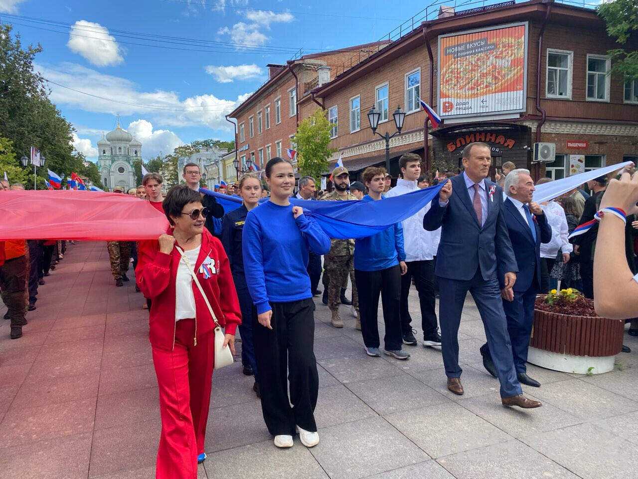 Александр Дрозденко в Гатчине пронес гигантский триколор