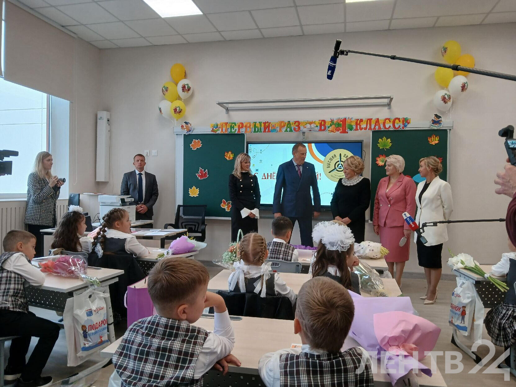Александр Дрозденко и Валентина Матвиенко также заглянули к первоклашкам. Напомним, школа «Высший пилотаж» рассчитана на 1175 мест. Ее строительство осуществлялось в 2022-2025 годах. В учреждении есть библиотека, актовый зал, три спортзала, столовая, медпункт, два автономных входа.