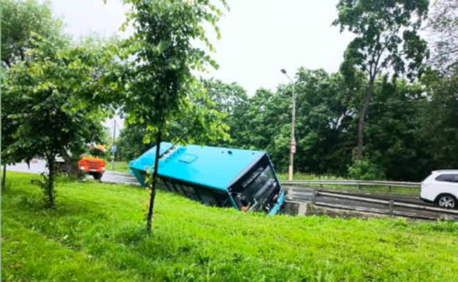 В поселке Мартышкино автобус улетел в кювет из-за комара