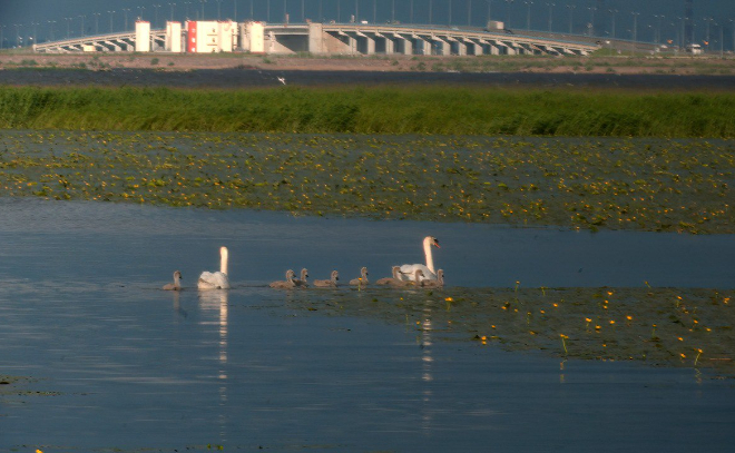 В Кронштадте пара лебедей-шипунов обзавелась рекордным количеством птенцов