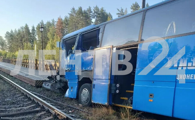 В Лодейнопольском районе экскурсионный автобус столкнулся с поездом