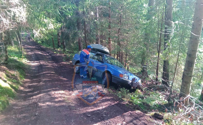 Иномарка оказалась в кювете на лесной дороге у деревни Васильево