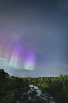 Зеленые и фиолетовые всполохи северного сияния запечатлели в Ленобласти