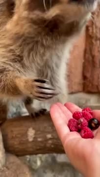 Ленинградский зоопарк показал, как енот Элвис с удовольствием лакомится сочными ягодами