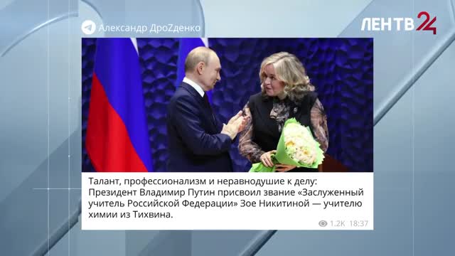 Владимир Путин присвоил звание «Заслуженный учитель» Зое Никитиной из Тихвина