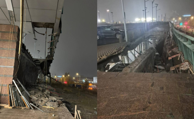 На Ладожском вокзале в Петербурге обрушилась часть крыши парковки