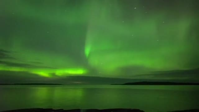 Ярко-зеленое северное сияние наблюдали на берегу Ладоги