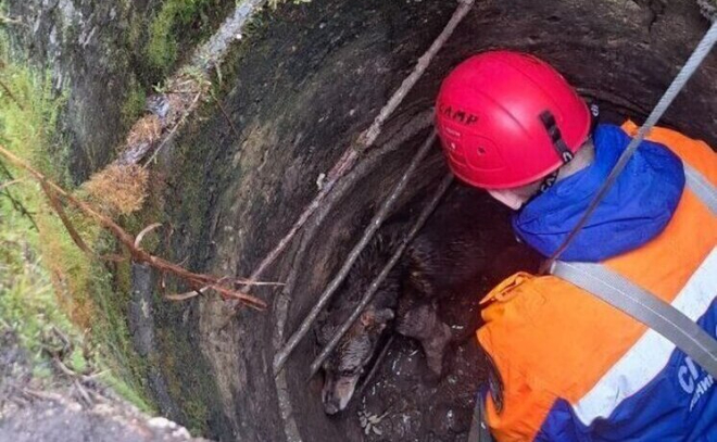 Тосненские спасатели вытащили из колодца бродячую собаку