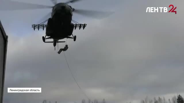 На полигоне в Ленобласти сотрудники ОМОН «Бастион» провели тренировку по беспарашютному десантированию