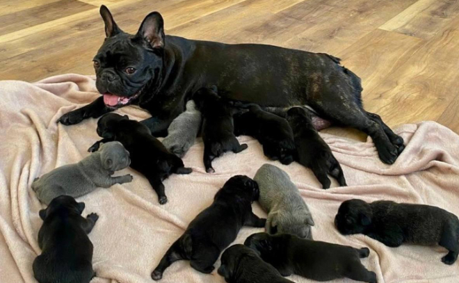 Рекорд Петербурга: французский бульдог Герда родила 12 щенков
