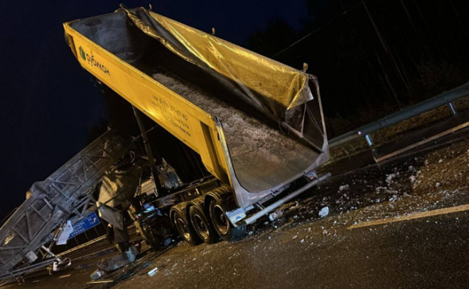 Грузовик с «поднятым» кузовом устроил километровые пробки под Петербургом