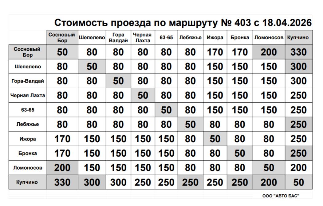 Автобус №403 «Сосновый Бор – Санкт-Петербург» изменит схему движения и расписание