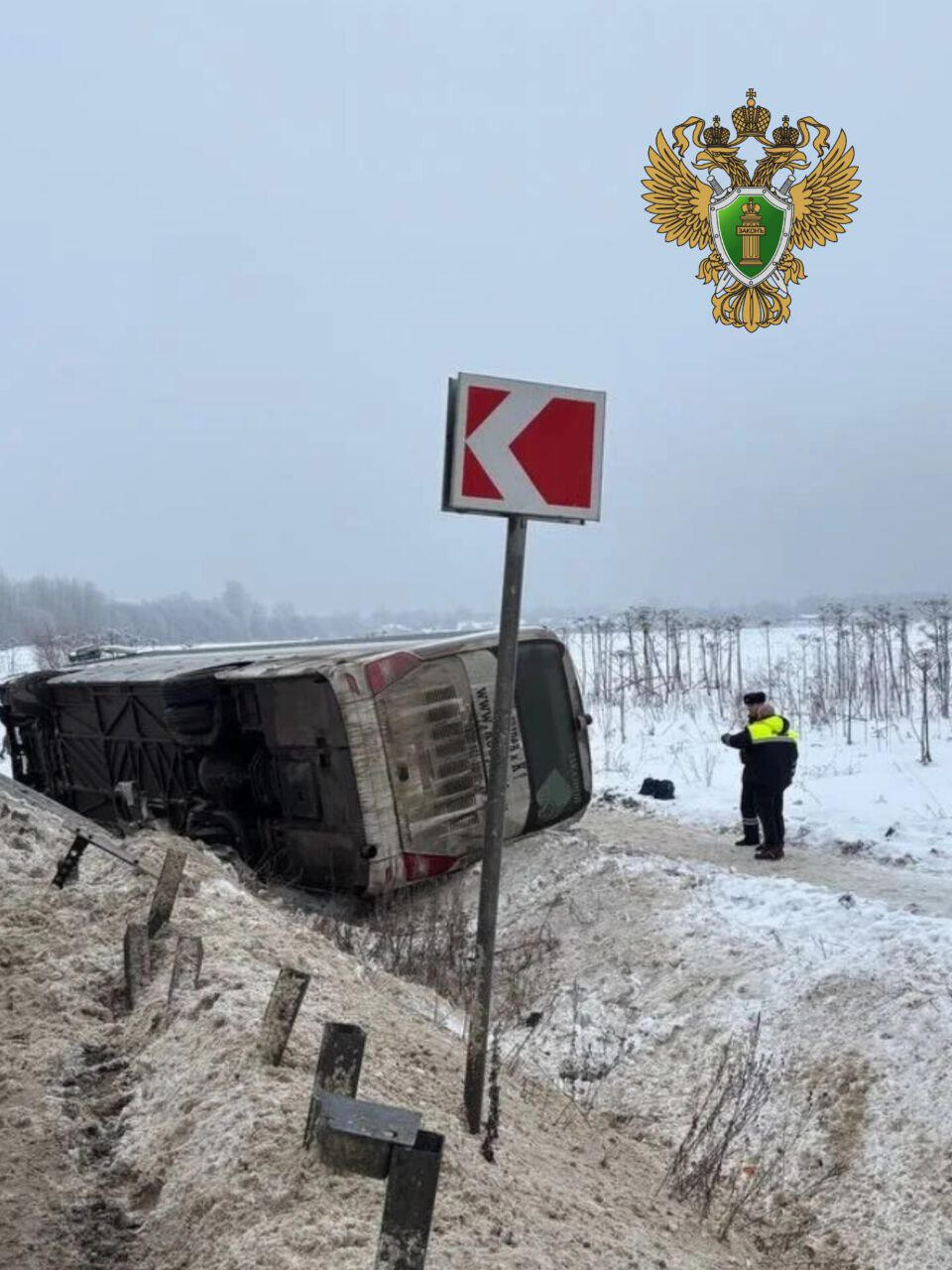 Автобус улетел в кювет на трассе «Нарва» и опрокинулся