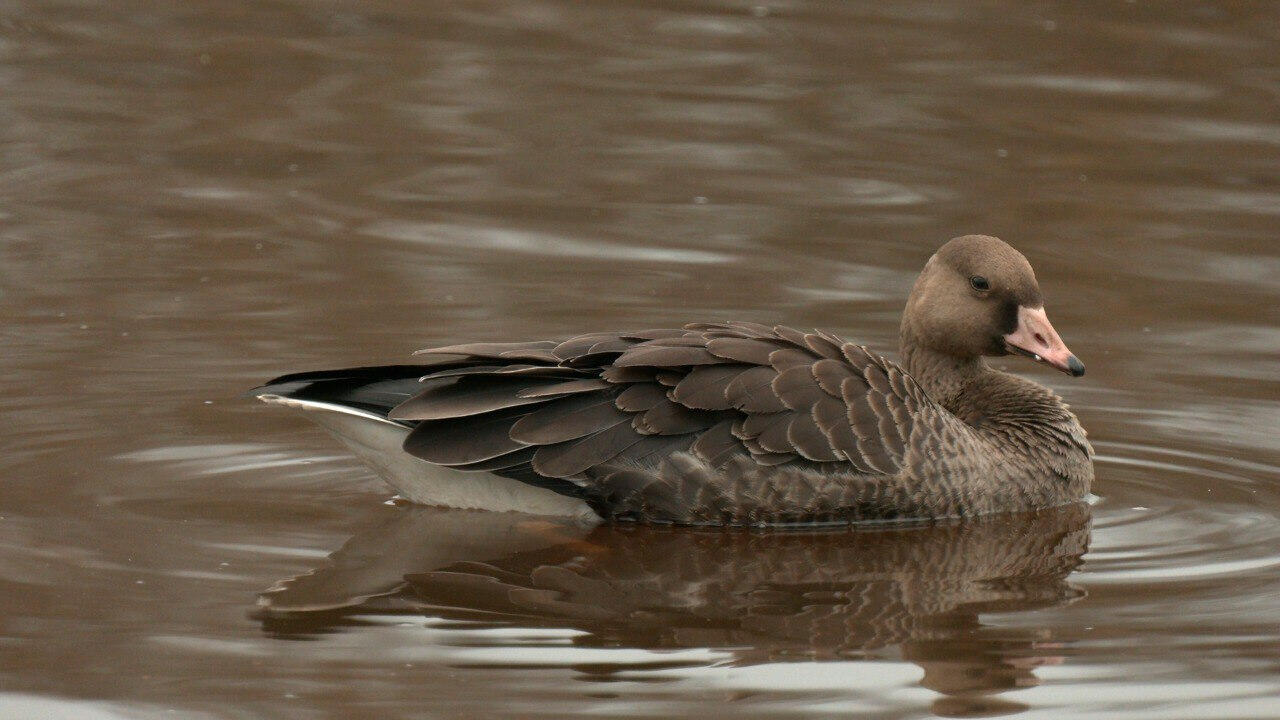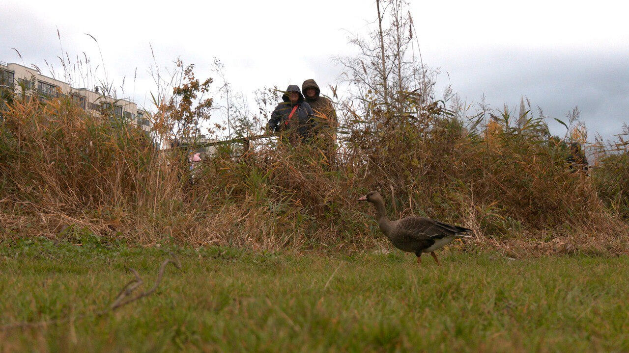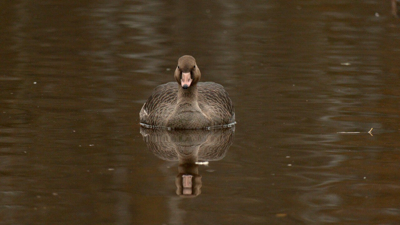 заметили молодого белолобого гуся, который по каким-то причинам отстал от своей