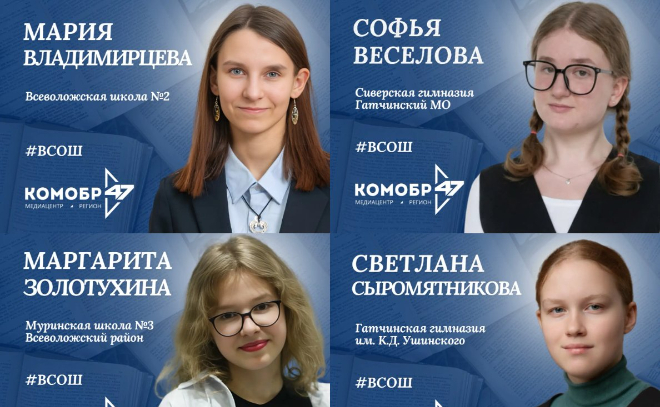 Ленинградскую область на престижных интеллектуальных испытаниях представят четыре школьницы. Это Мария Владимирцева (Всеволожская школа № 2), Софья Веселова (Сиверская гимназия), Маргарита Золотухина (Муринская школа № 3) и Светлана Сыромятникова (Гатчинская гимназия им. К. Д. Ушинского).