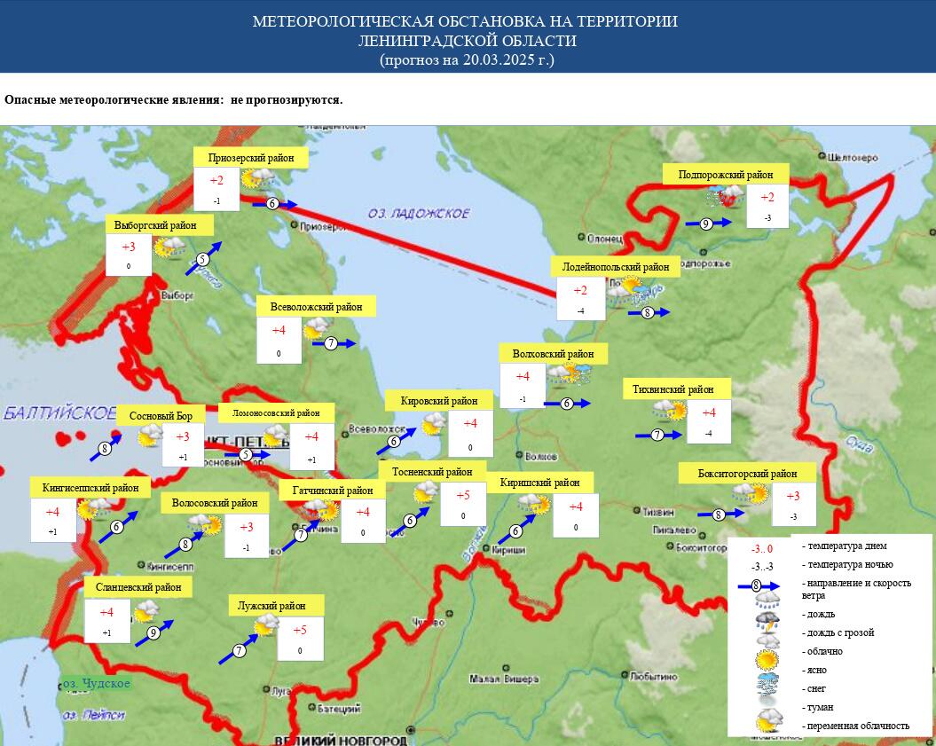 До +8, ветрено, местами снег: прогноз погоды в Ленобласти на 20 марта