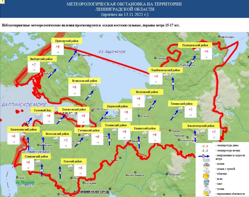 В Ленинградской области в этот четверг, 13 ноября, погода совсем не порадует жителей: будет довольно тепло, но настроение подпортят дожди и сильный ветер, сообщают синоптики.