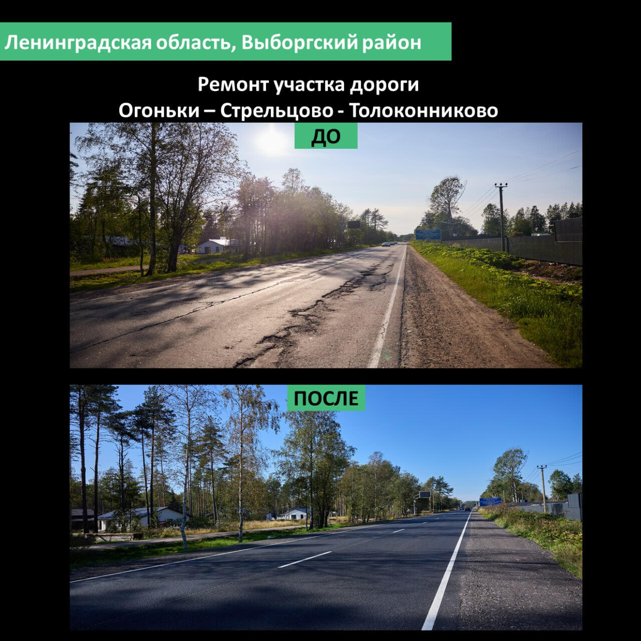 Выборгском районе завершен ремонт участка дороги Огоньки – Стрельцово –