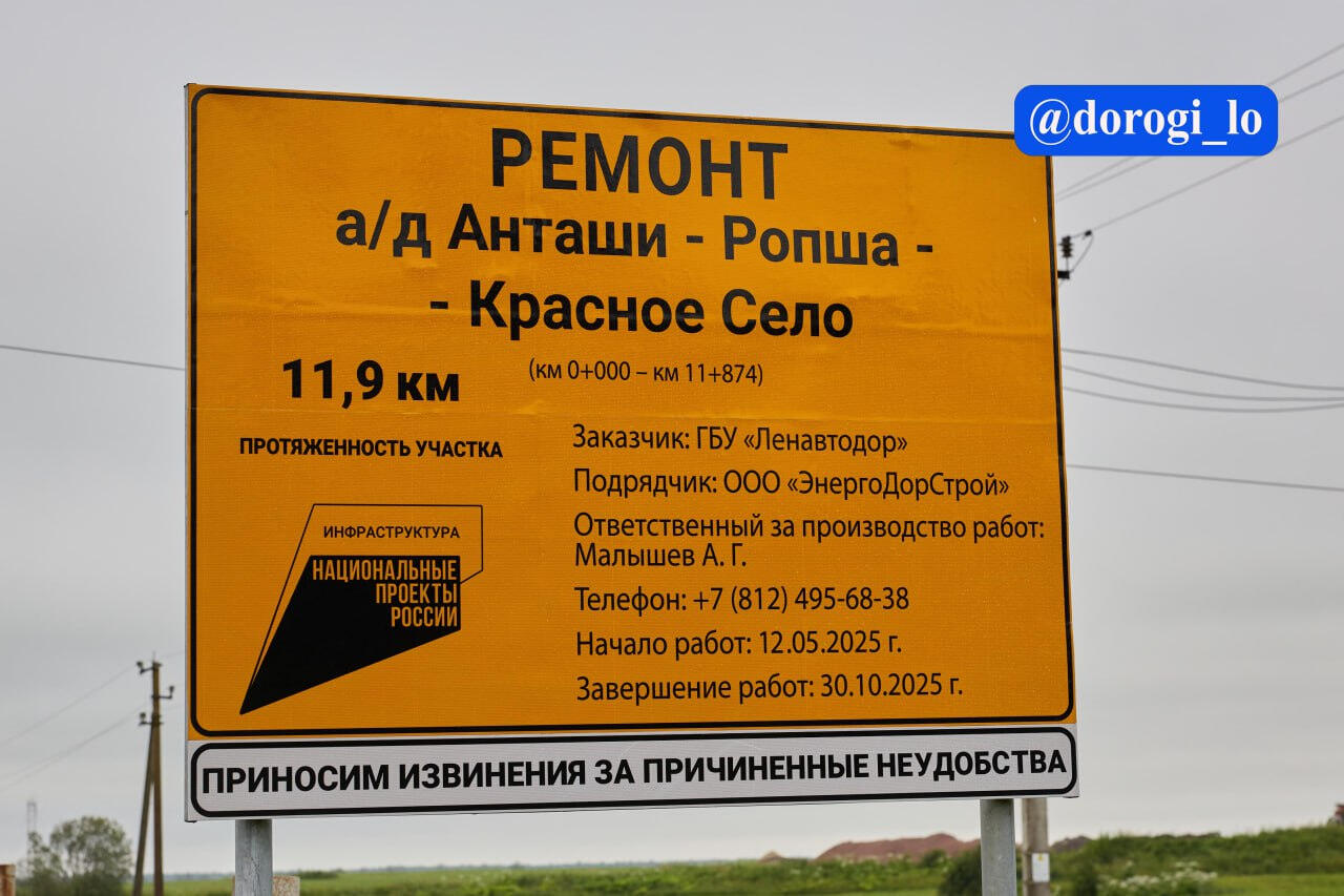 районах ведется ремонт 12-километрового участка дороги Анташи – Ропша – Красное