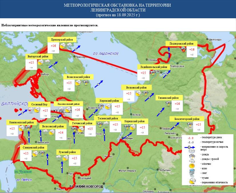 В этот четверг, 18 сентября, в Ленинградской области вновь будет облачно с прояснениями. Ночью местами пройдет небольшой дождь, а днем кратковременные осадки прогнозируют уже в большинстве районов.
