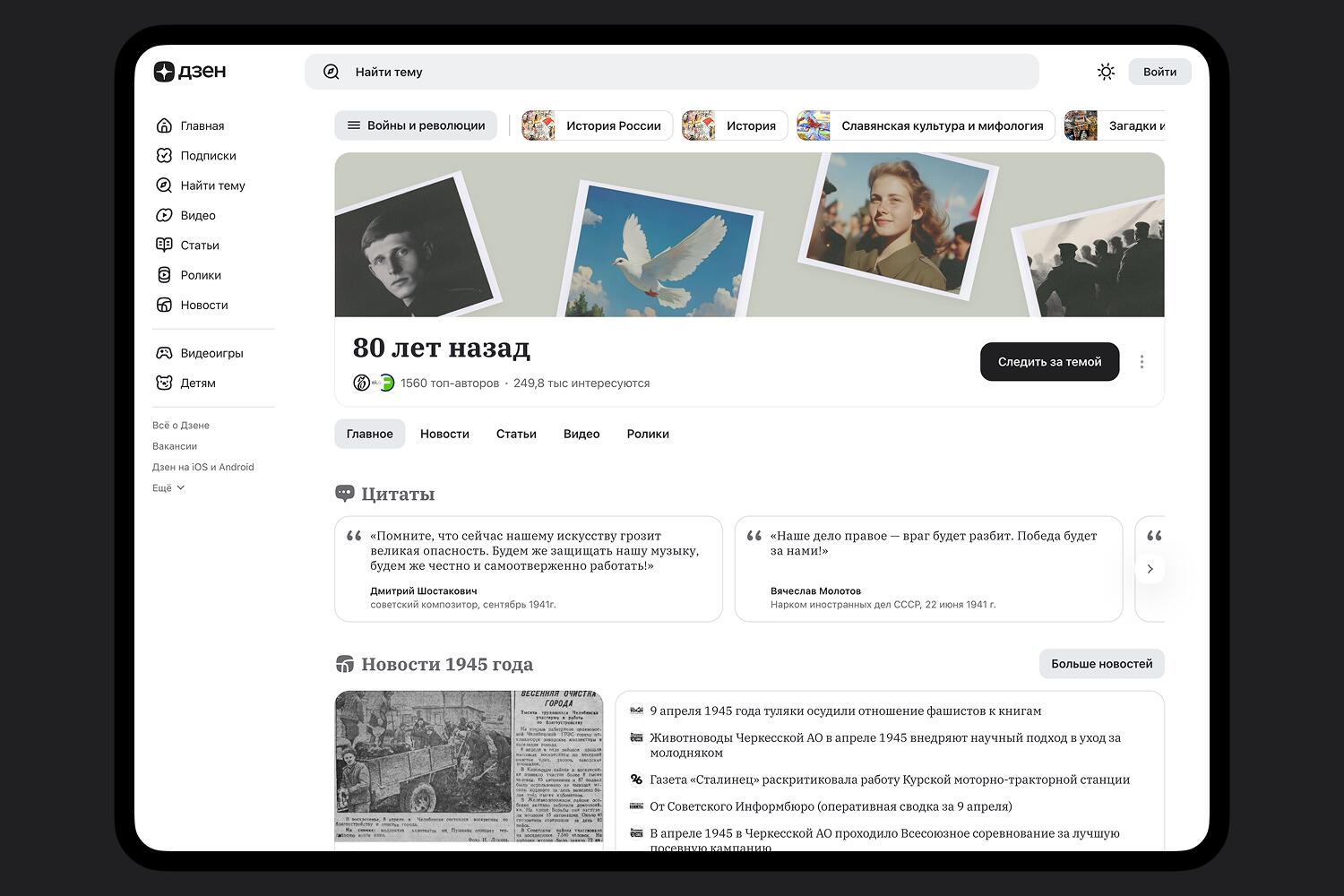 На главной странице Дзена будет доступен специальный блок с архивными публикациями и тематическими рассказами ко Дню Победы.