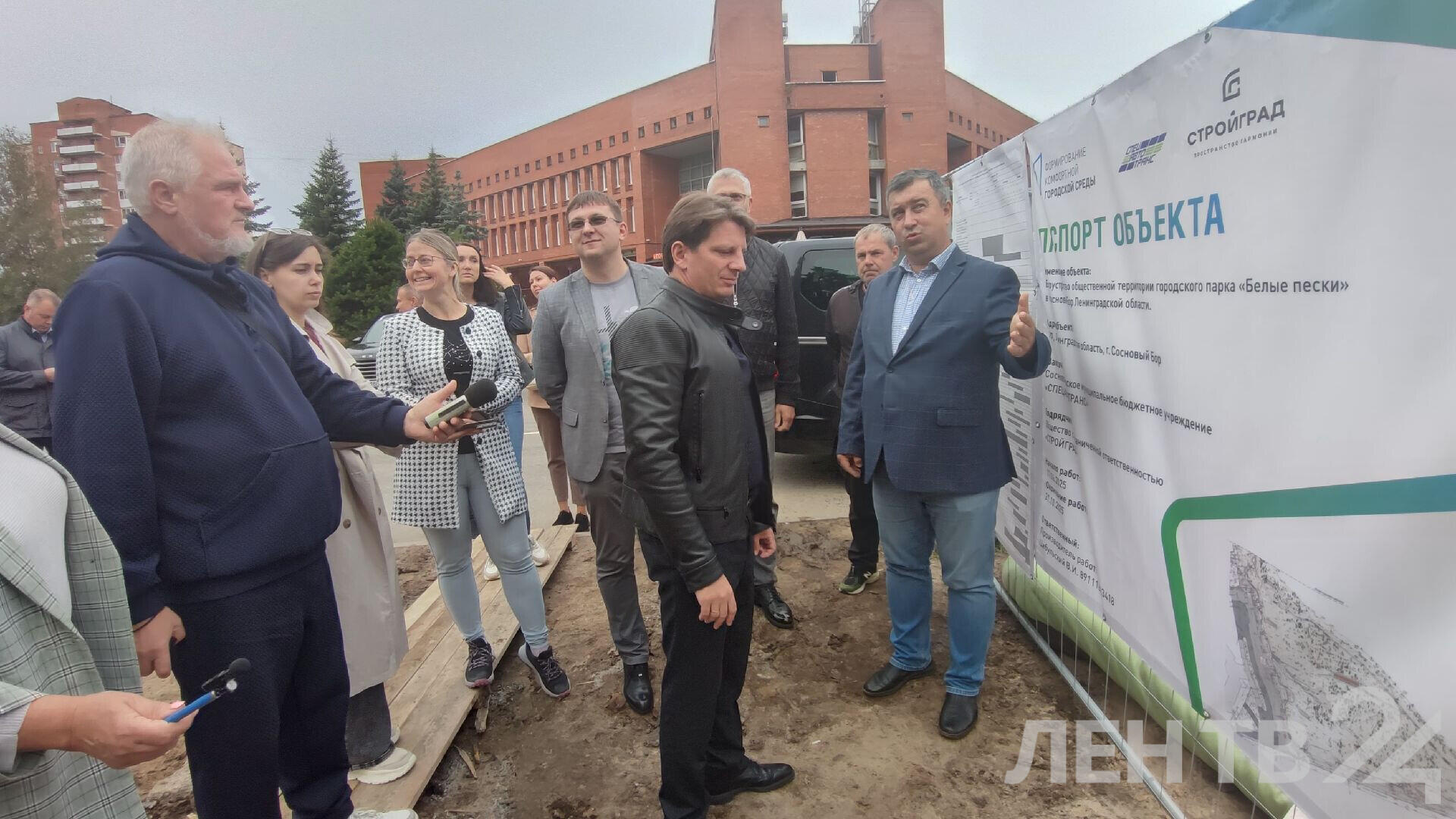 Евгений Барановский проверил ход благоустройства парка «Белые пески» в Сосновом Бору