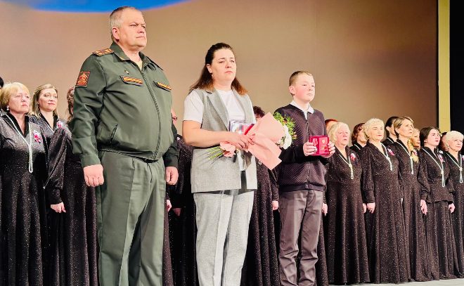 Сегодня во время совещания, на котором районные власти подводили итоги 2025 года, награды героя торжественно передали его родным. Орден и медаль вдове бойца и его сыну вручил начальник призывного отделения военного комиссариата Бокситогорска и Тихвина, Бокситогорского и Тихвинского районов Дмитрий Фроландин.