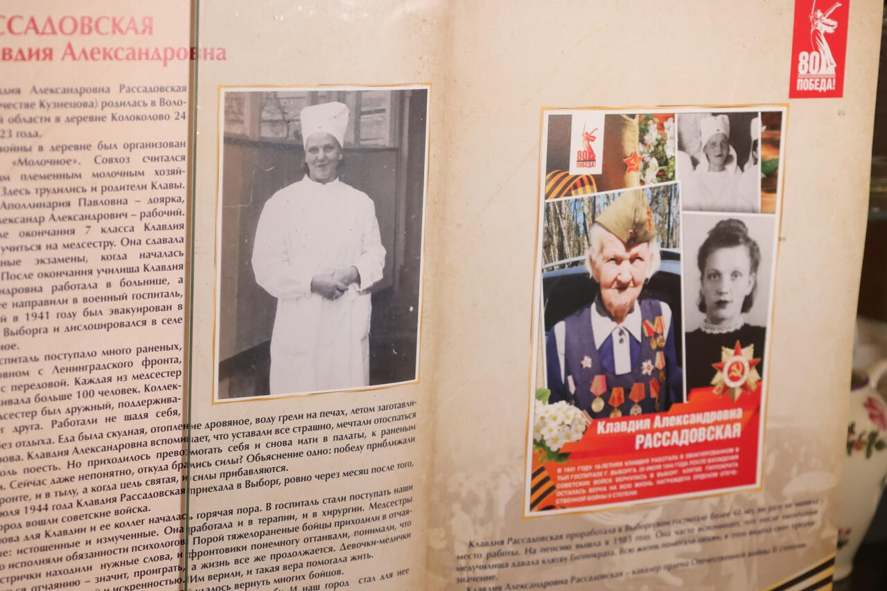 Клавдия Александровна — непосредственный участник войны. Будучи медсестрой, она спасала раненых солдат в эвакуированном госпитале, а порой и просто добрым словом возвращала бойцам надежду. С 1944 года она жила и работала в Выборге, где проработала в одном месте — в военном госпитале — более 40 лет.
