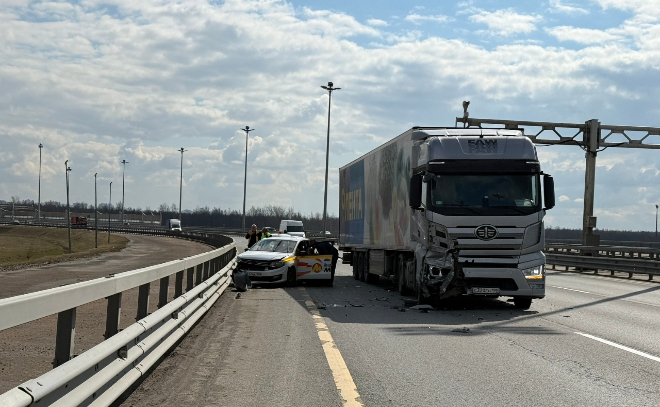 Фура влетела в машину такси на ЗСД перед съездом на КАД