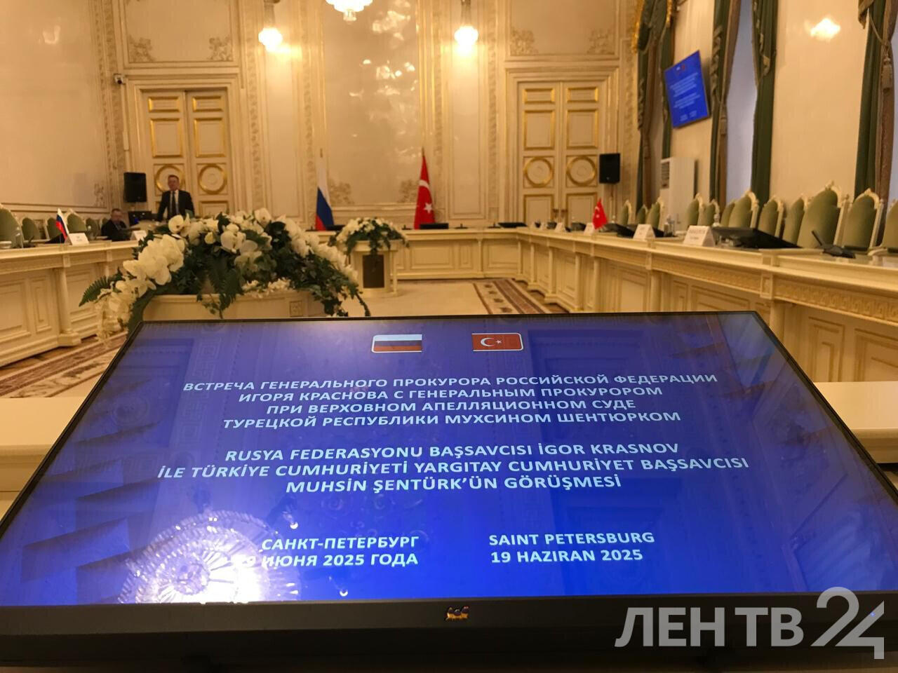 В рамках ПМЭФ-2025, который проходит в Петербурге с 18 по 20 июня, генеральный прокурор Российской Федерации Игорь Краснов встретился с генеральным прокурором при Верховном аппеляционном суде Турецкой Республики Мухсином Шентюрком.