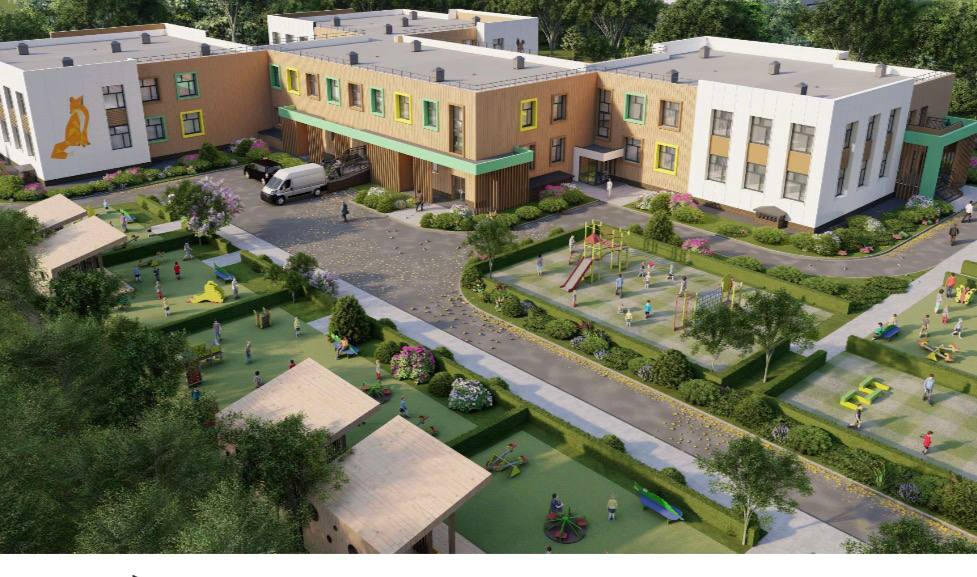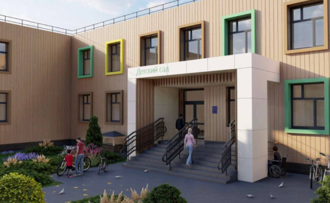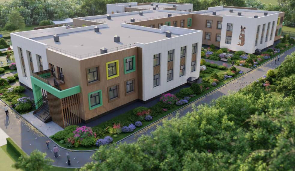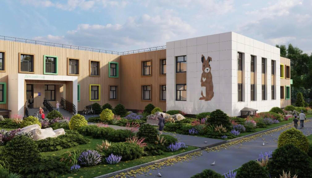 В дошкольном учреждении планируют открыть девять групп. В здании также будут музыкальный и физкультурный залы, медицинский блок, пищеблок и другие необходимые помещения. Рядом с детсадом – физкультурная зона, огород, фруктовый сад и ягодник.