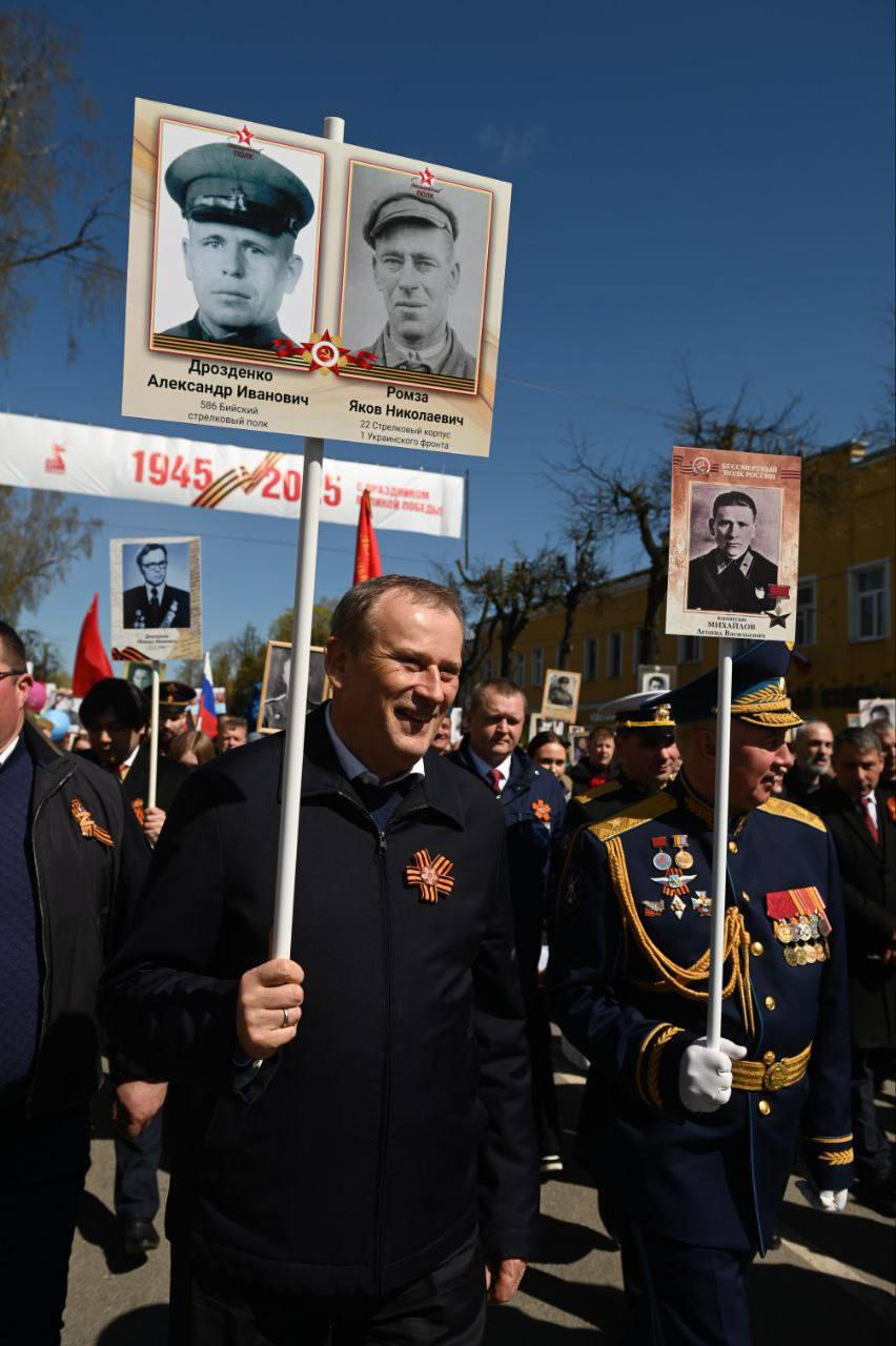 «Традиционно несу портреты дедов — это Ромза Яков Николаевич и Дрозденко Александр Иванович. Оба воевали, по каждому я искал отдельно историю», — рассказал глава Ленобласти.