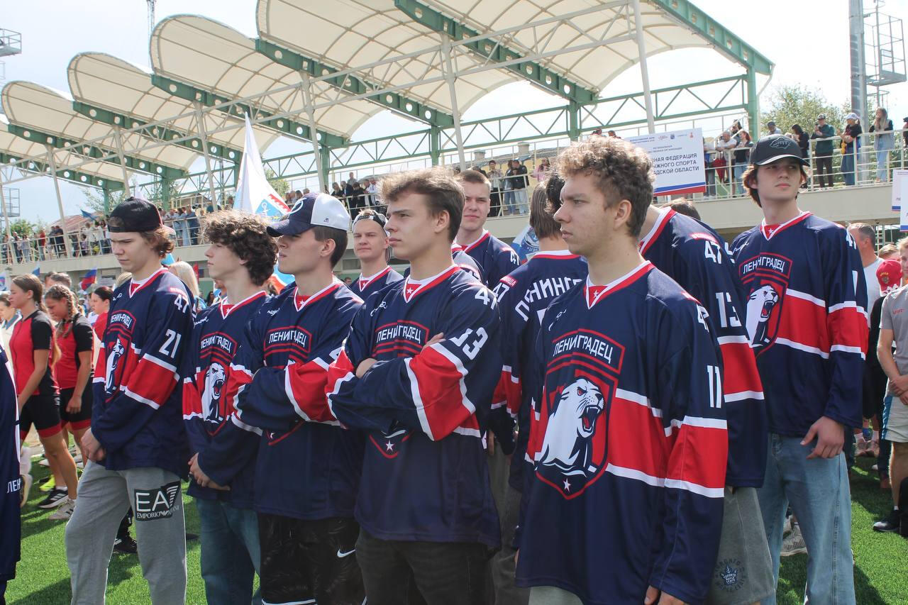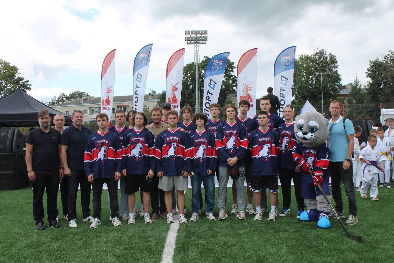 На стадионе в Гатчине во время праздника, посвященного Дню физкультурника, был официально представлен молодежный хоккейный клуб «Ленинградец».