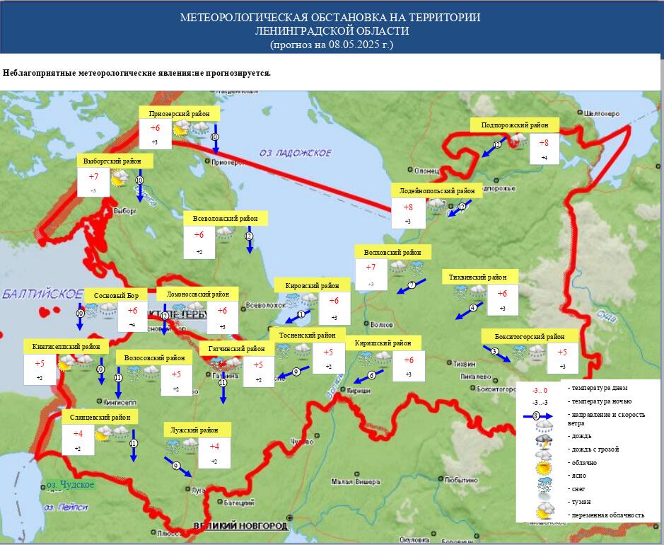 Природа не торопится радовать ленинградцев хорошей погодой: в канун Дня Победы в регионе вновь будет холодно, пасмурно и мокро.