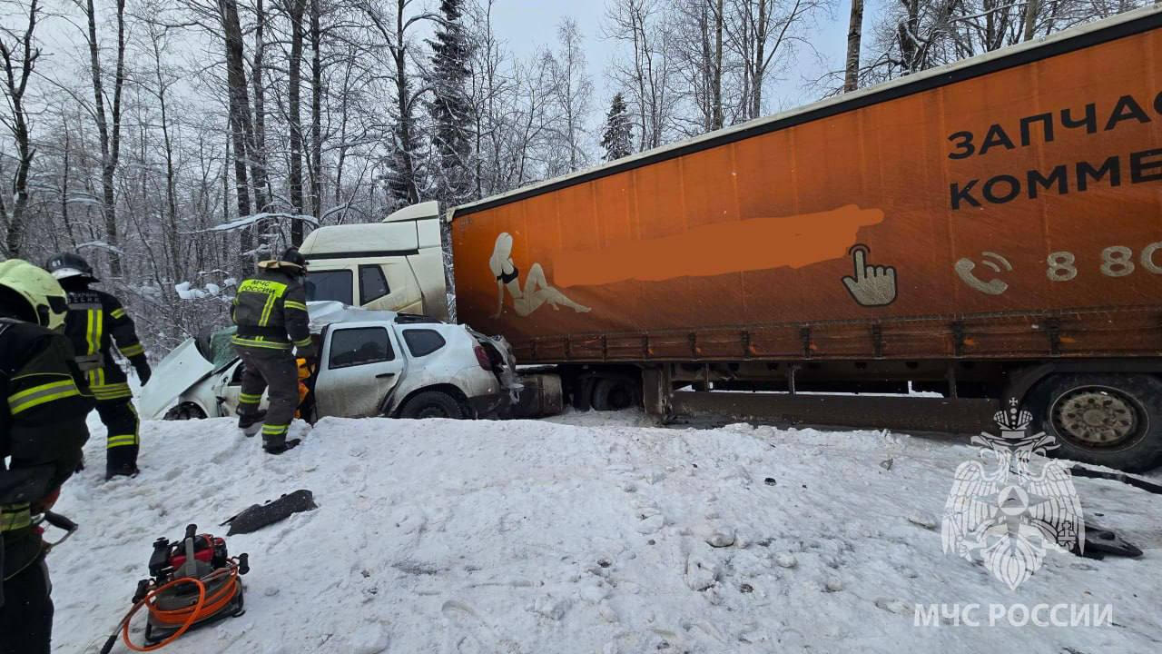 По предварительным данным, «Рено Дастер» с 46-летним мужчиной за рулем для обгона выехал на встречную полосы и столкнулся грузовым автомобилем FAW. Большегруз после этого врезался в другой грузовик – DAF.