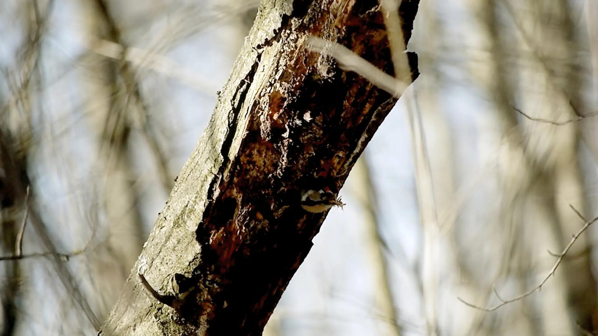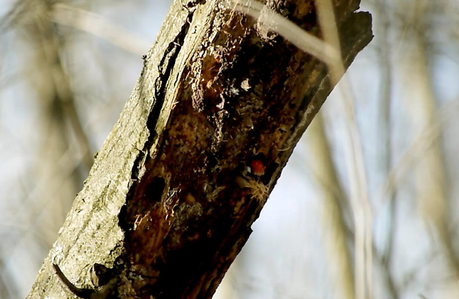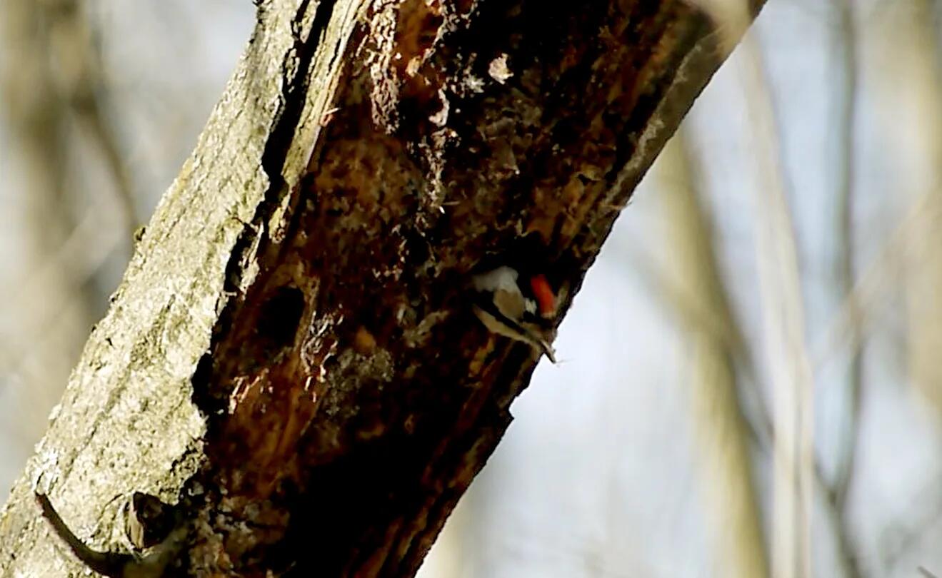 Интересна особенность расположения входа в дупло: обычно дятлы ориентируют его на восток, чтобы с первыми лучами солнца оно прогревалось. Однако этот дятел сделал вход с северной стороны — такое поведение иногда связывают с предчувствием жаркого лета.