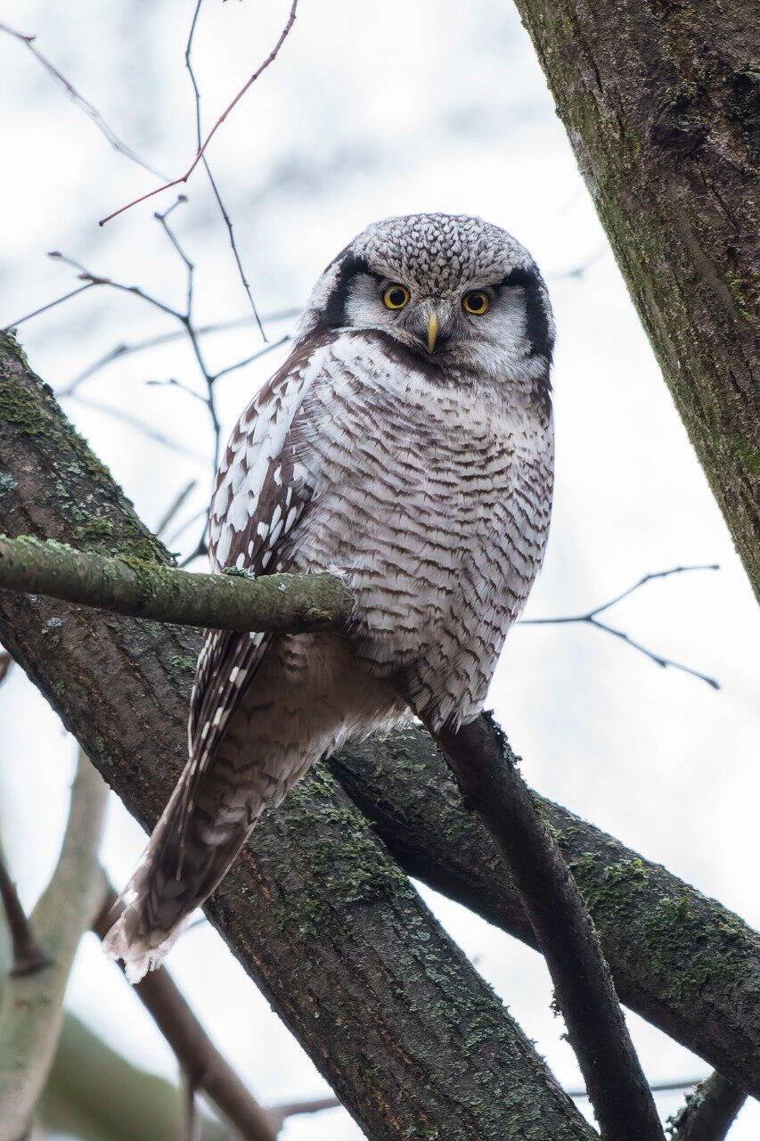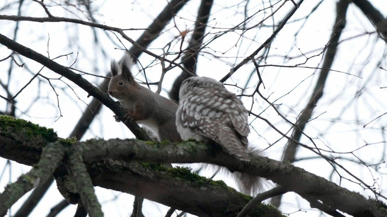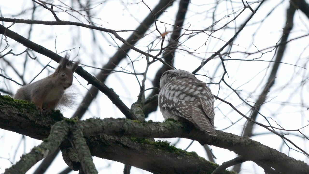 На Елагином острове в объектив камеры попала редкая ястребиная сова