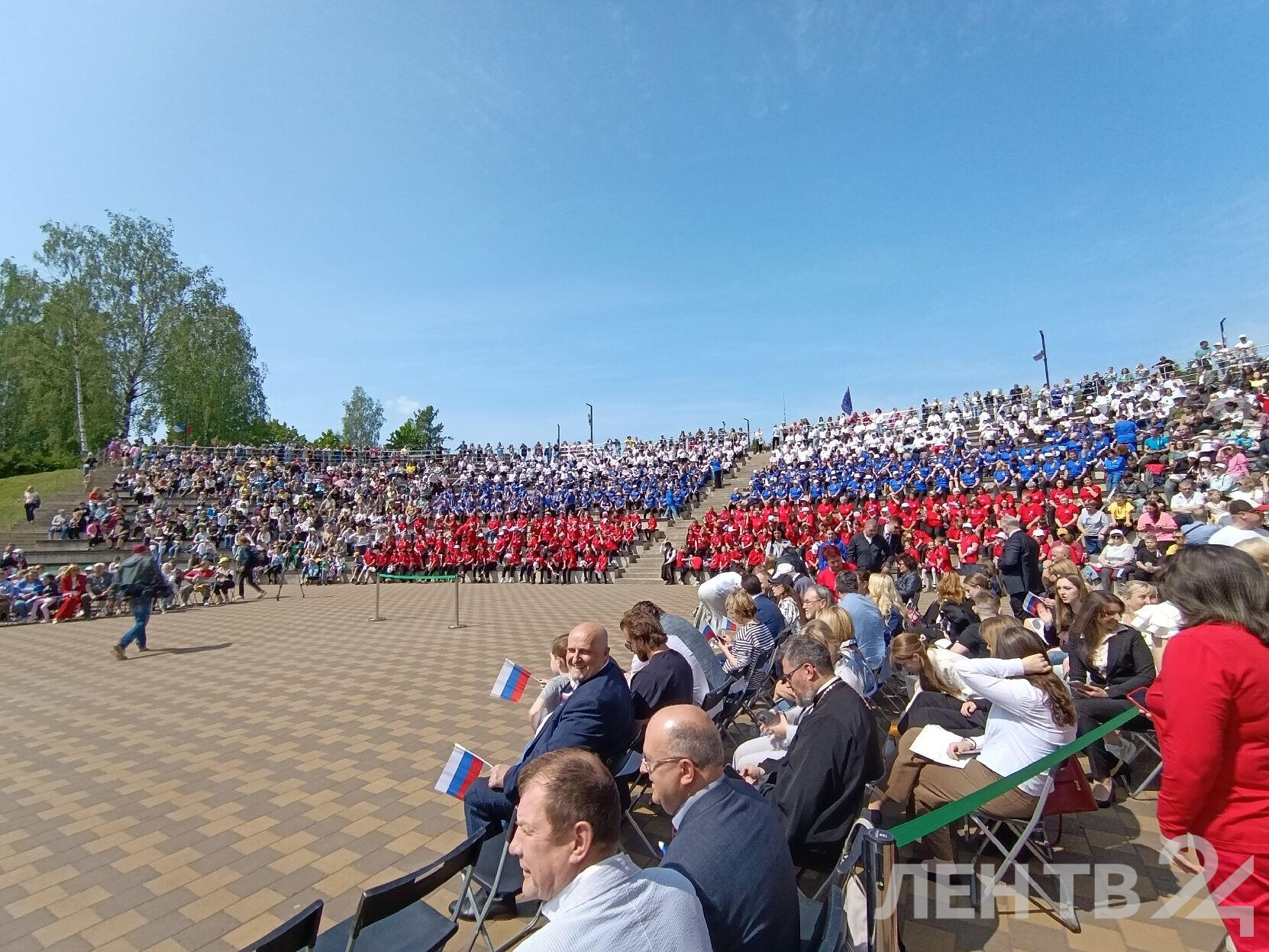 Кроме того, в парке сегодня развернули флаг России площадью 2025 квадратных метров, а участники сводного хора Всеволожского района образовали российский триколор в амфитеатре.