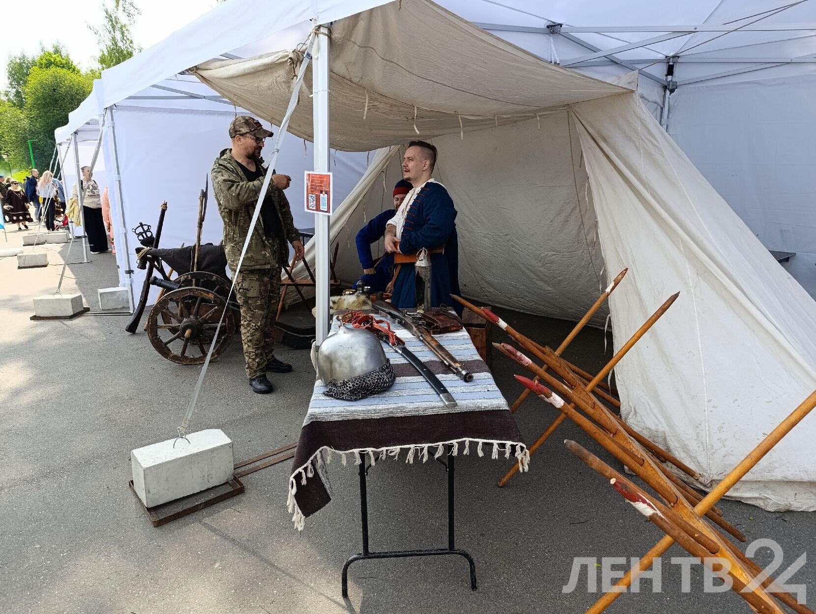 «Десантное братство» Ленинградской области организовало выставку истории русского воинства: от Александра Невского до СВО. В шатрах, посвящённых Великой Отечественной войне, Афганскому конфликту и специальной военной оппозиции все экспонаты подлинные. В тех, что рассказывают о XIX и XVI веках, – копии предметов вооружения.