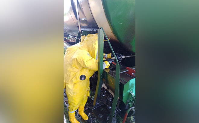В поселке Мга Кировского района в пятницу, 20 июня, произошла утечка удобрений. Они вытекли из железнодорожной цистерны.