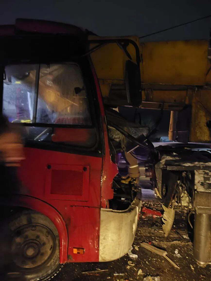 Автобус ПАЗ совершил наезд на стоящий грузовой автомобиль КАМАЗ.