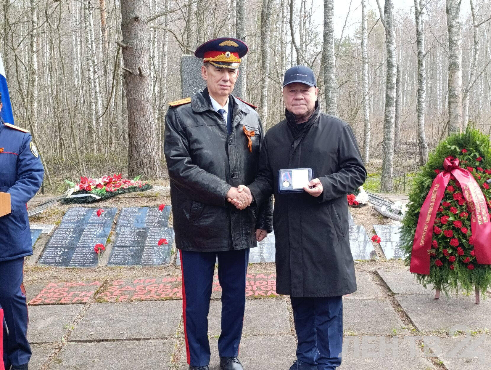 В пятницу, 25 апреля, Кировском районе Ленинградской области прошло торжественное мероприятие, приуроченное к 80-летию Победы. У мемориала в Кобоне сотрудники управления СК по 47-му региону возложили цветы. На церемонии памятную медаль вручили заслуженному артисту РФ Сергею Селину, а капсулу времени с посланием будущим следователям передали в музей ведомства.