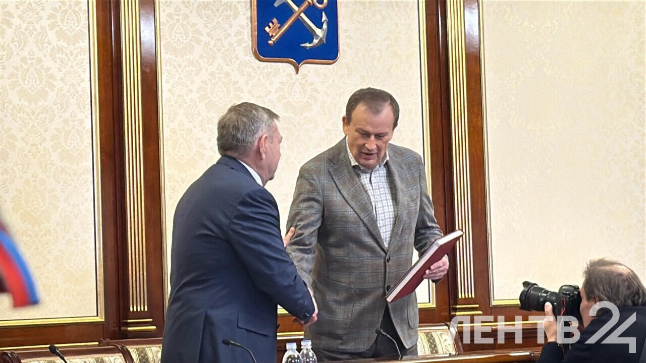 В начале встречи Валерий Сердюков вручил главе региона Александру Дрозденко книгу о почетных гражданах.