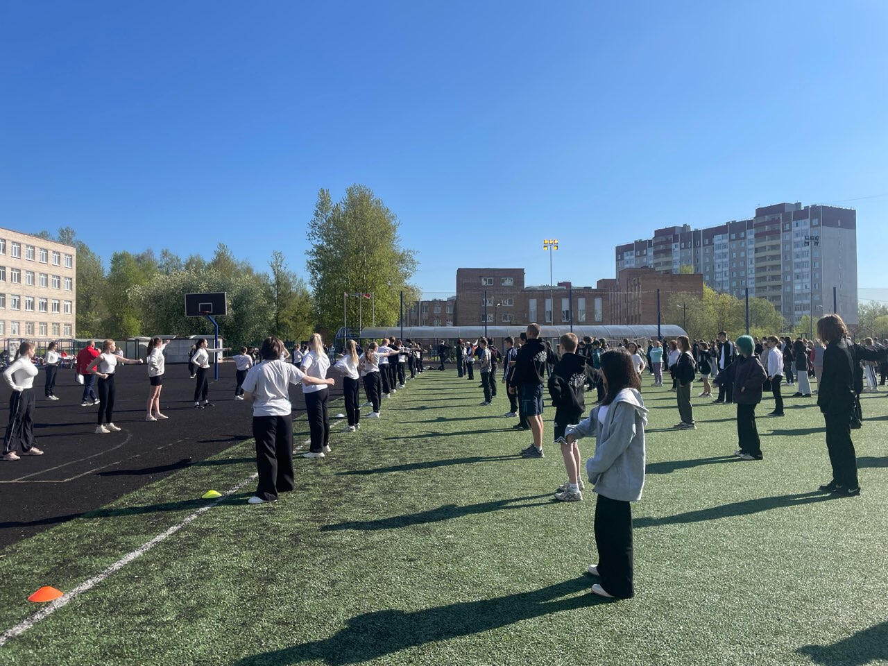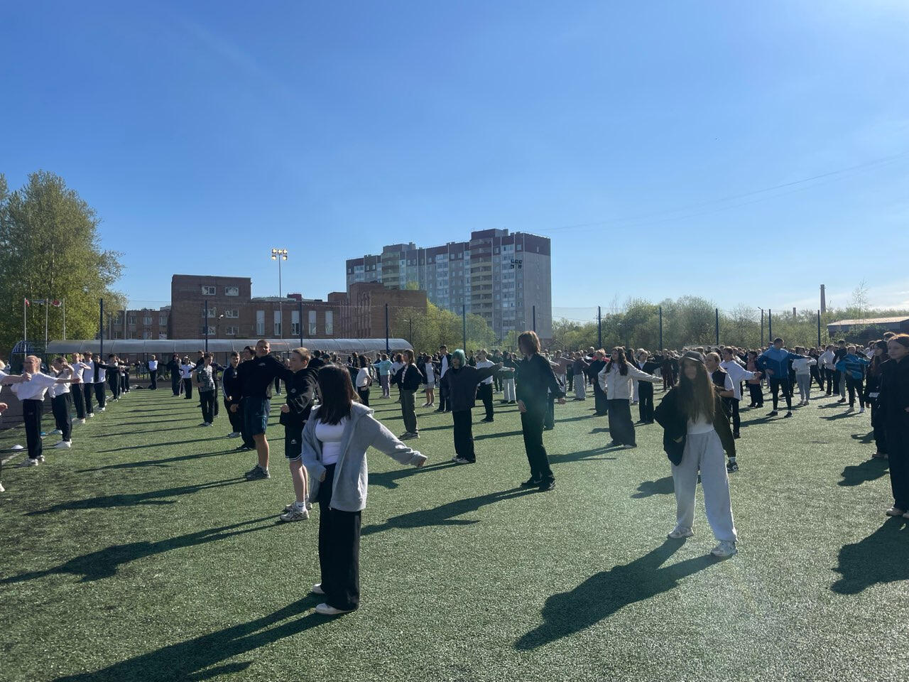 800 школьников и студентов сделали утреннюю зарядку на стадионе Гатчинского университета. Спортивный флешмоб «Километры здоровья» собрал не только подрастающее поколение. К выполнению упражнений присоединились школьные учителя, преподаватели колледжа, ректор Гатчинского государственного университета и представители власти.